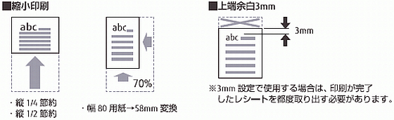 80mm、58mm両方のレシート幅が使用できる高速印字プリンター、用紙節約のエコタイプです。