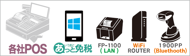 「あっと免税」(アクティベーション版)を、インターネットに接続して利用する際の、構成一覧表で該当の構成をクリックすると、個々のハードウェア設定マニュアルが開きます。