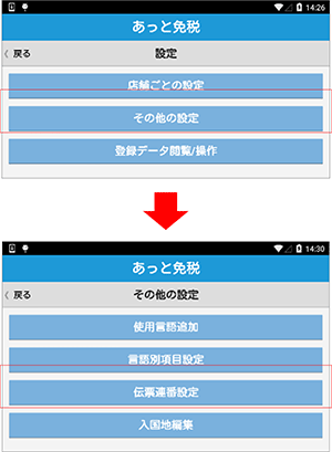※店舗情報を事前に設定していない場合、あっと免税の初回利用時に店舗入力画面へ遷移します。