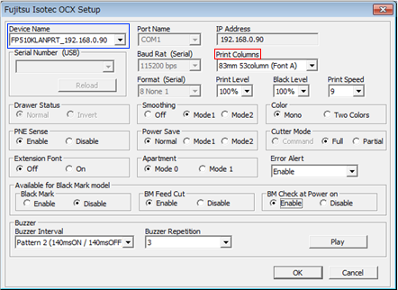 ※青枠内「Device Name」は、BCPOSの「プリンタ機種名+IP」で使用します