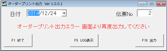 F10 出力:デフォルトの状態で、直前伝票の印刷、日付と伝票No入力で過去伝票を出力します